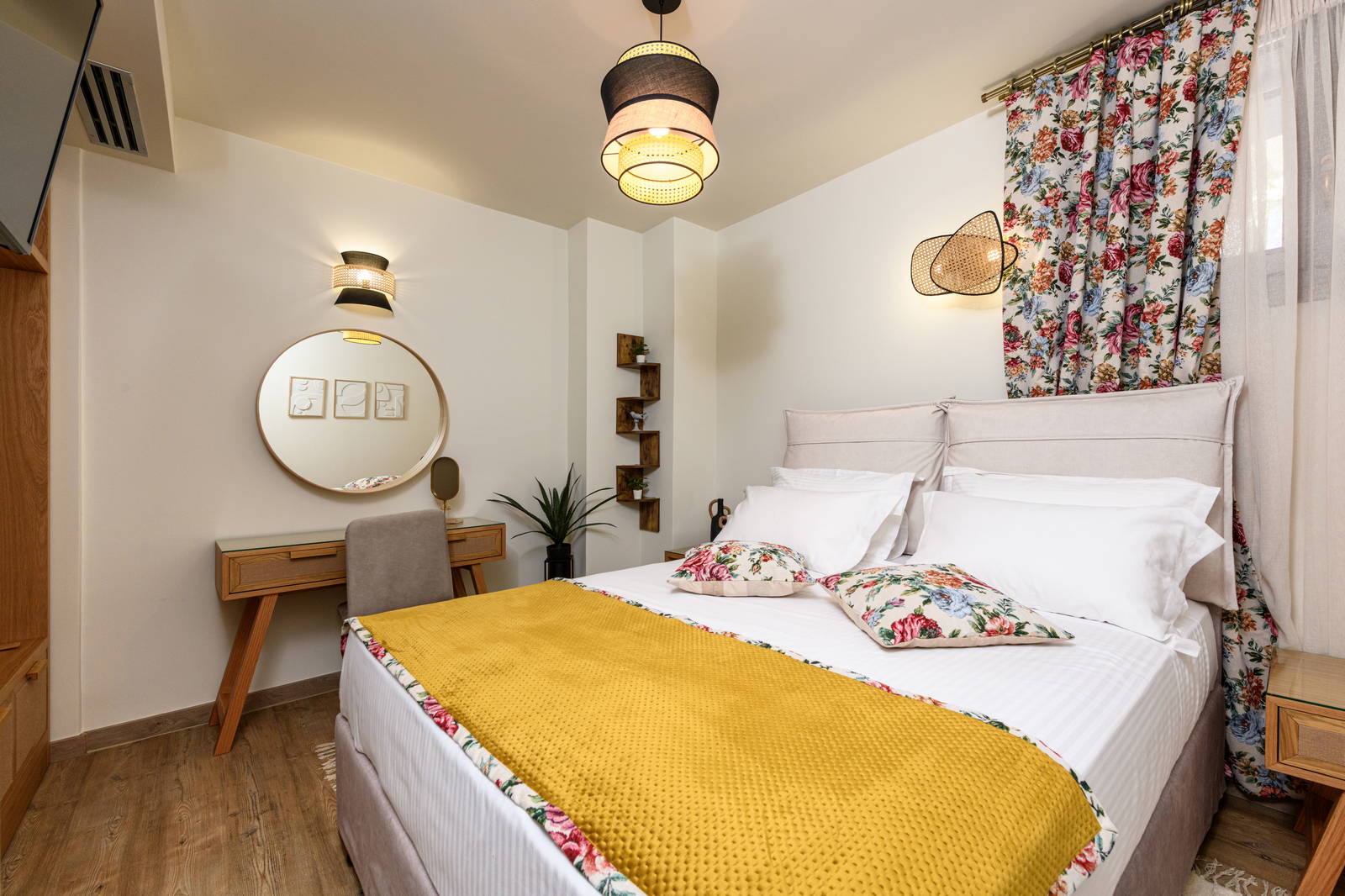 At the foot of a hill, in one of the most privileged parts of Panagia and 2-3 minutes walking distance from the center square, are built the “Enavlion Luxury Domes”, two independent fully equipped apartments in a traditional stone house with garden. Besides the beauties of the picturesque village of Panagia you can gaze the wonderful bay of Chrysi Ammoudia (Golden Beach), with the cape of Kramvousa and the island of Samothraki faintly visible on the horizon.
